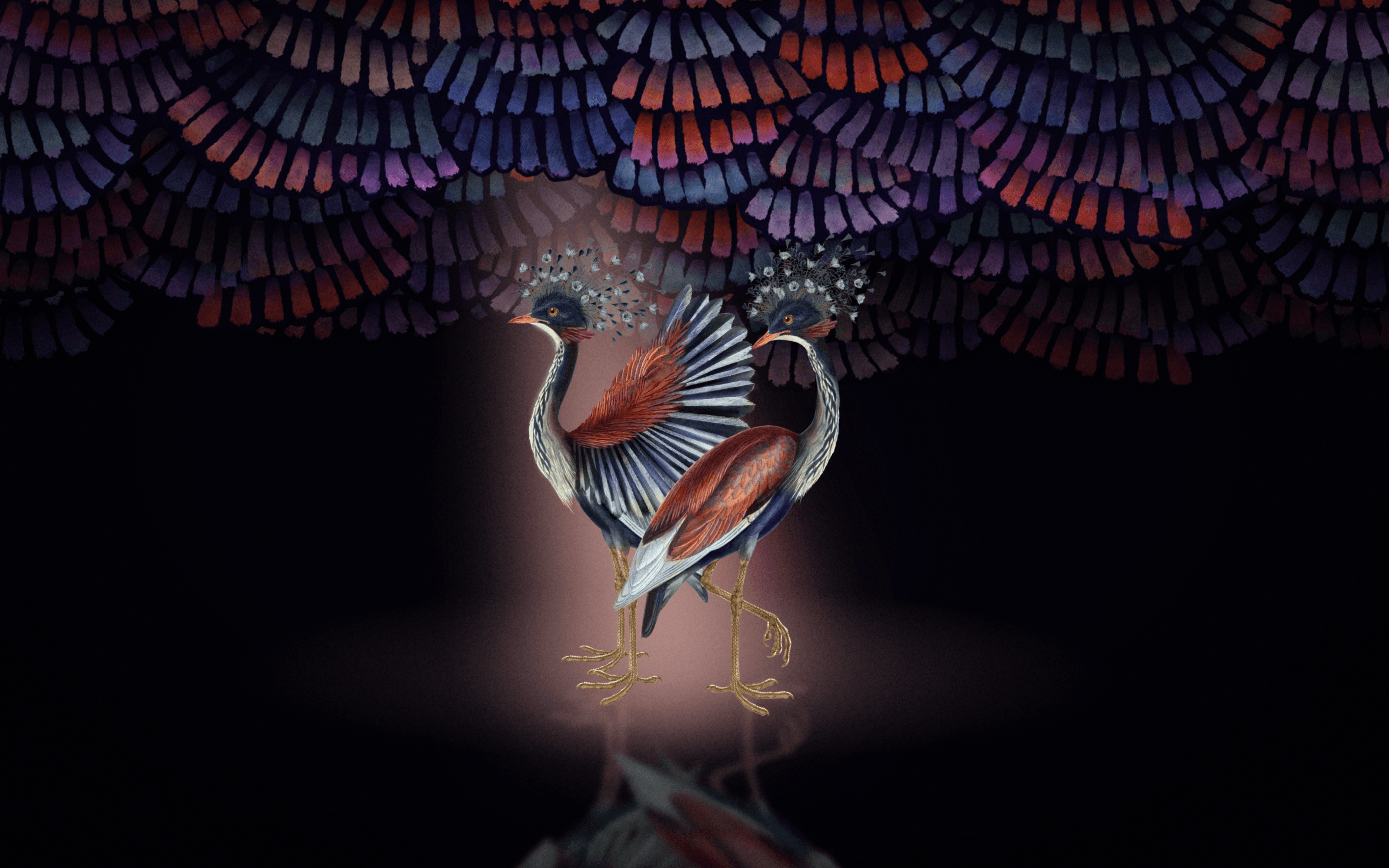 The Dandelion Cranes Wallcovering is visible in Chapter III of A Digital Life Extraordinary: Paper Play and available online, at Moooi Brand Stores, and at selected Moooi dealers.